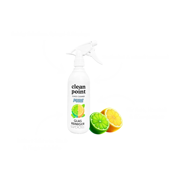 Der Clean Point PURE Glasreiniger ist ein professioneller, schnell wirkender Glasreiniger mit frischem Lime-&-Menthol-Duft.