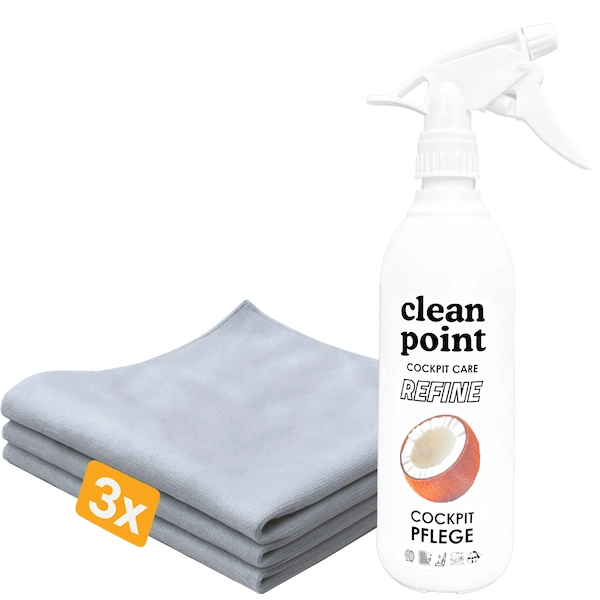 Dieses Set kombiniert den Refine Cockpit Pflege – Interior Quick Detailer (500 ml) mit 3 extra-weichen Cockpit-Mikrofasertüchern. Perfekt für schnelle, schonende Innenraumreinigung ohne Schlieren – ideal für Cockpit, Kunststoff, Klavierlack, Displays & empfindliche Oberflächen.