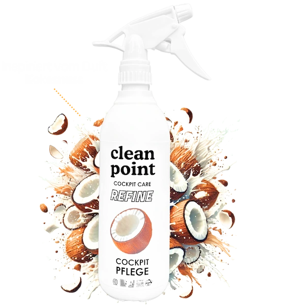 Nur sauber? Oder auch geschützt? Unsere Cockpitpflege verleiht seidenmatten Glanz, wirkt antistatisch und schützt vor UV-Strahlen & Sonneneinwirkung.