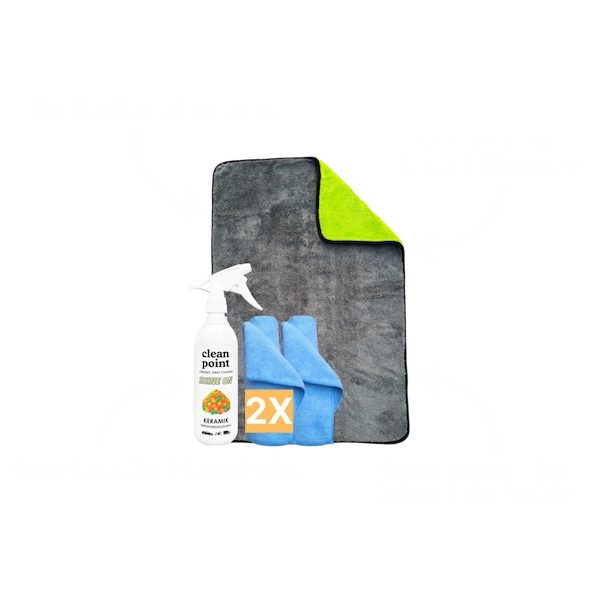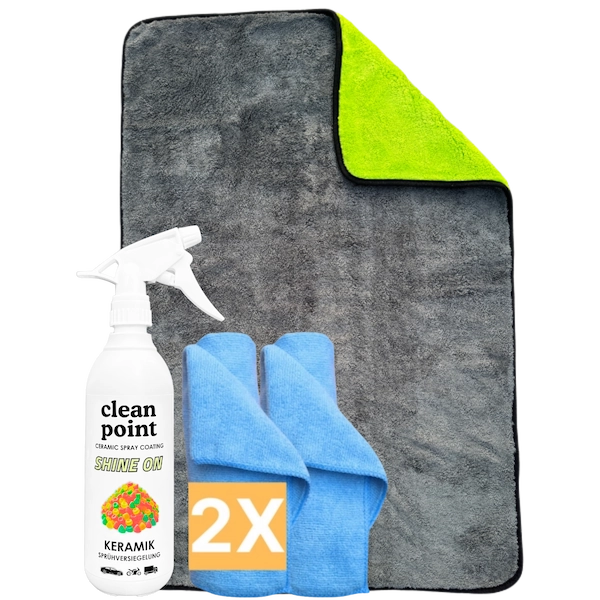 Mit Keramik Sprühversiegelung, Großem Trockentuch & Allzweck-Mikrofaser-Tüchern schützt du Lack, Glas, Felgen & weitere Außenflächen, bringst sie zum Strahlen & trocknest dein Fahrzeug mühelos – für ein makelloses Finish!